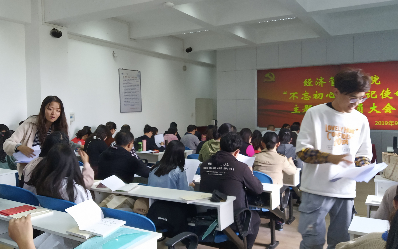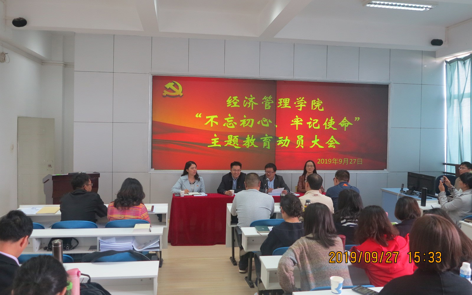 按照中央、省委“不忘初心、牢记使命”主题教育的部署要求,根据公司党委的安排,2019年9月27日下午,2026世界杯官网公司党委在惟行楼1301房地产实验室召开全体师生党员“不忘初心、牢记使命”主题教育动员大会。公司党委书记樊传章同志主持会议,公司党委第五指导组施磊同志、喻玲同志参会进行了动员大会的指导。
