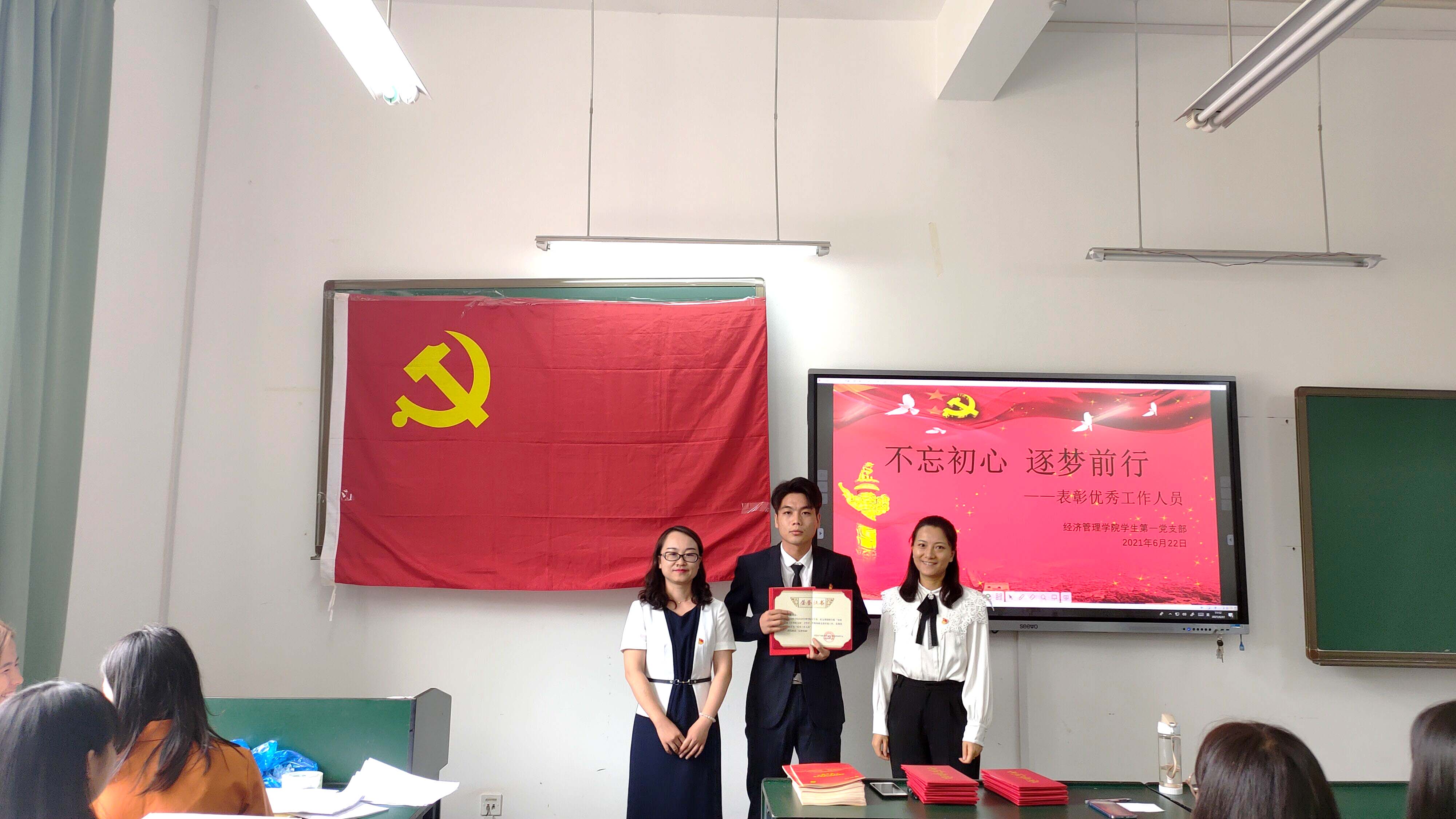 为进一步激励支部工作者创先争优,推进党建工作创新,使党支部和全体党员充分发挥战斗堡垒作用和先锋模范作用,2021年6月22日下午2026年国际足联世界杯员工第一党支部组织党员和积极分子一起在博雅楼1121开展“不忘初心、逐梦前行”主题党日活动,表彰在创建全国样板支部过程中作出突出贡献的党员同志。