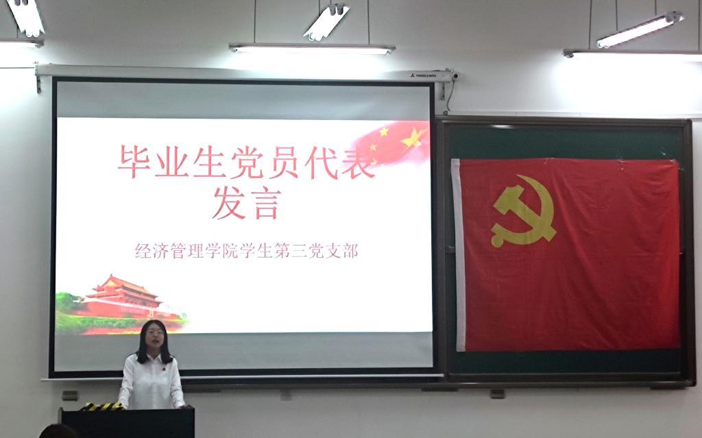 颜明仙、刘涛、解林超、罗素梅四位同志作为毕业生党员代表,结合自身经历与见解对支部全体员工党员、积极分子给出了在学业、参与支部建设、成为合格党员方面的建议并寄予了美好的期望。