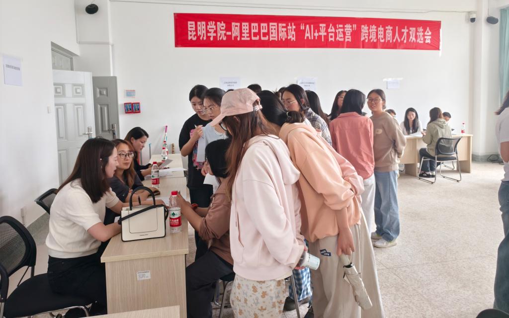 随后举行的人才双选会,公司邀请了云南绿荫园艺有限公司、云南远锦光学仪器公司、云南欧蒂维纳科技有限公司等10余家优质跨境电商企业进校,现场提供涵盖AI运营、国际站运营助理、跨境客服等多个岗位。国贸专业员工积极参与,应聘气氛热烈,企业用人需求与员工就业意向高效对接,取得良好成效。