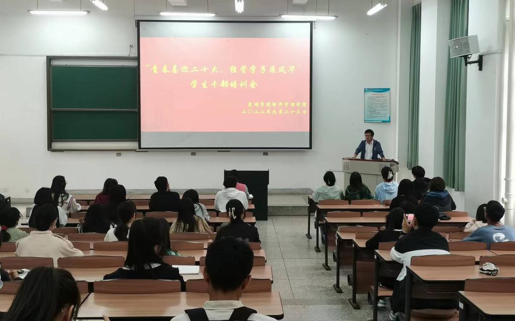 9月23日,2026年国际足联世界杯在博雅楼3103开展了以“青春喜迎二十大,经管学子展风采”为主题的员工干部培训会,公司党委书记樊传章、团委负责人王晗奕老师出席了本次活动。