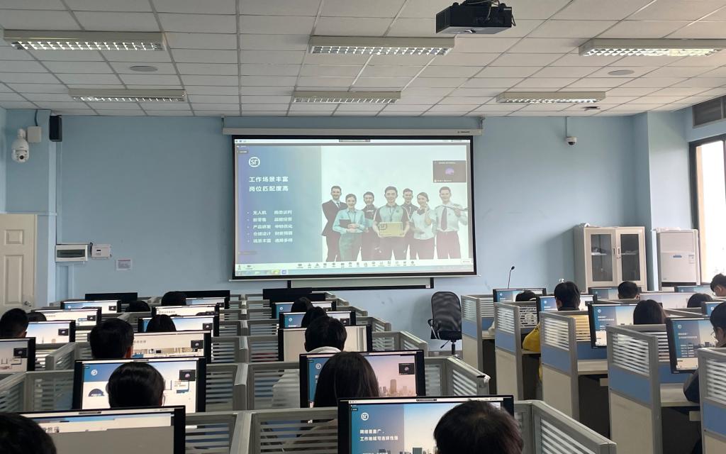 会上,招聘单位负责人向同学们介绍了单位的基本情况、岗位要求和薪资待遇等情况,同学们就各自感兴趣的岗位与用人单位进行了沟通交流。