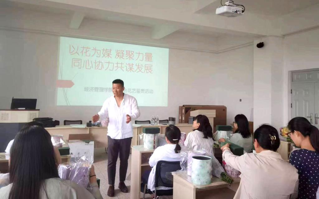 5月26日,花文化主题活动如期举行。花文化公司的朱老师给大家介绍了插花艺术的起源、发展,以及不断进步的鲜花工艺,让大家从理论上认识插花艺术。接下来,老师们在花艺师的指导下,发挥创新能力,积极参与到插花实践中,在朱老师的指导下,老师们耐心细致地完成作品,最终自己动手完成一个个错落有致、色泽饱满、精致非凡的插花花艺作品。