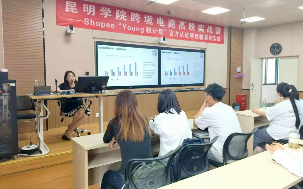 随后,昆明市跨境电子商务协会秘书长的专题讲座成为开营仪式的核心亮点。讲座围绕“跨境电商产业趋势、云南区位机遇、Shopee平台实操”三大板块展开,既有宏观数据支撑,又有微观案例指导。在产业趋势解读中,秘书长引用权威数据,分析云南跨境电商发展的区位优势,刘秘书长指出,昆明作为“一带一路”重要节点和中国—东盟合作的前沿城市,已构建起“铁路八出省五出境”的立体交通网络,拥有15座民用机场、45个通航点覆盖南亚东南亚,数量位居全国第一。此外,昆明已建成包括昆明综合保税区、云南邮政跨境电商园区在内的10个专业跨境电商产业园区,形成了从仓储、物流到通关的全链条服务体系。