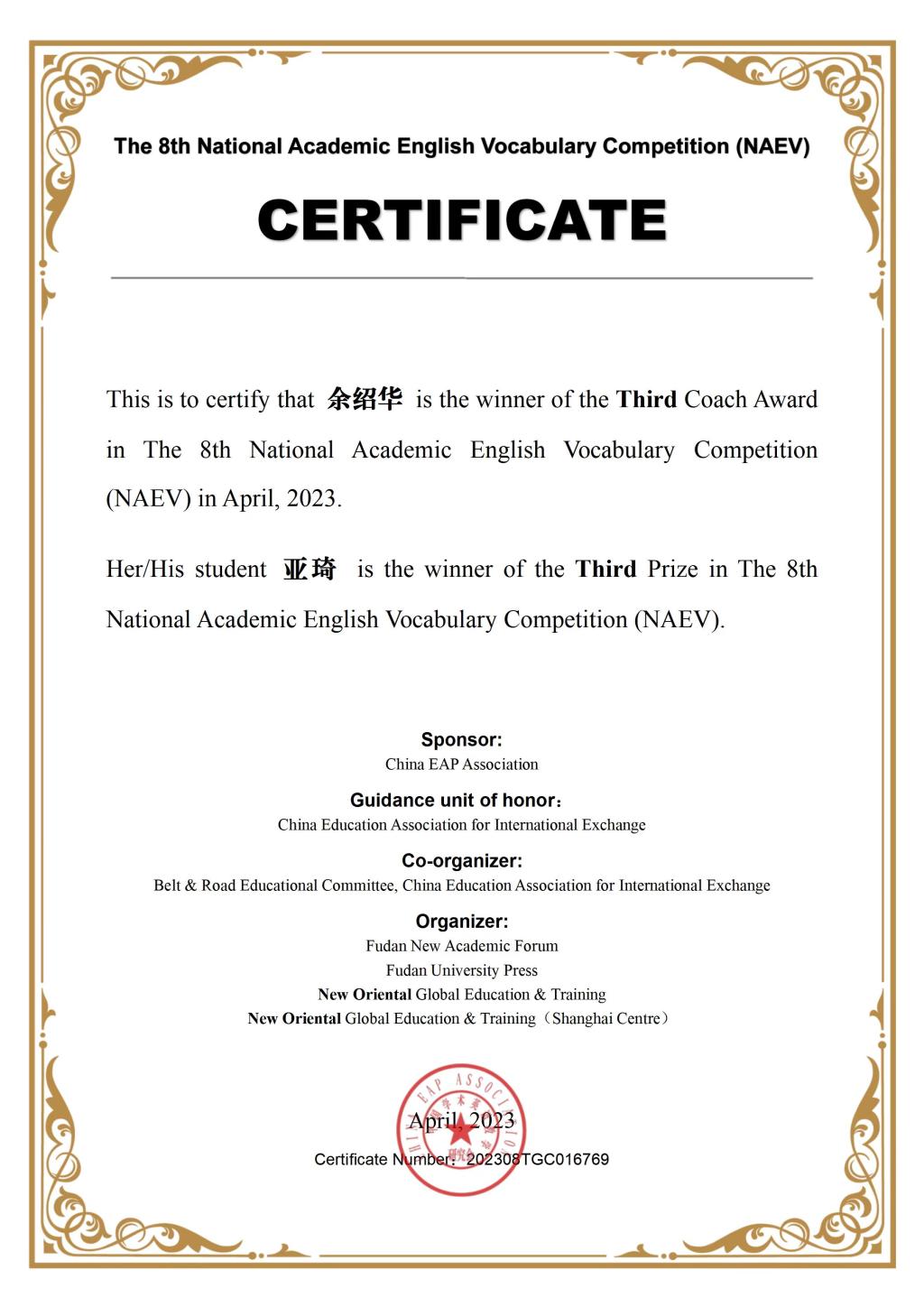 省级三等奖 |