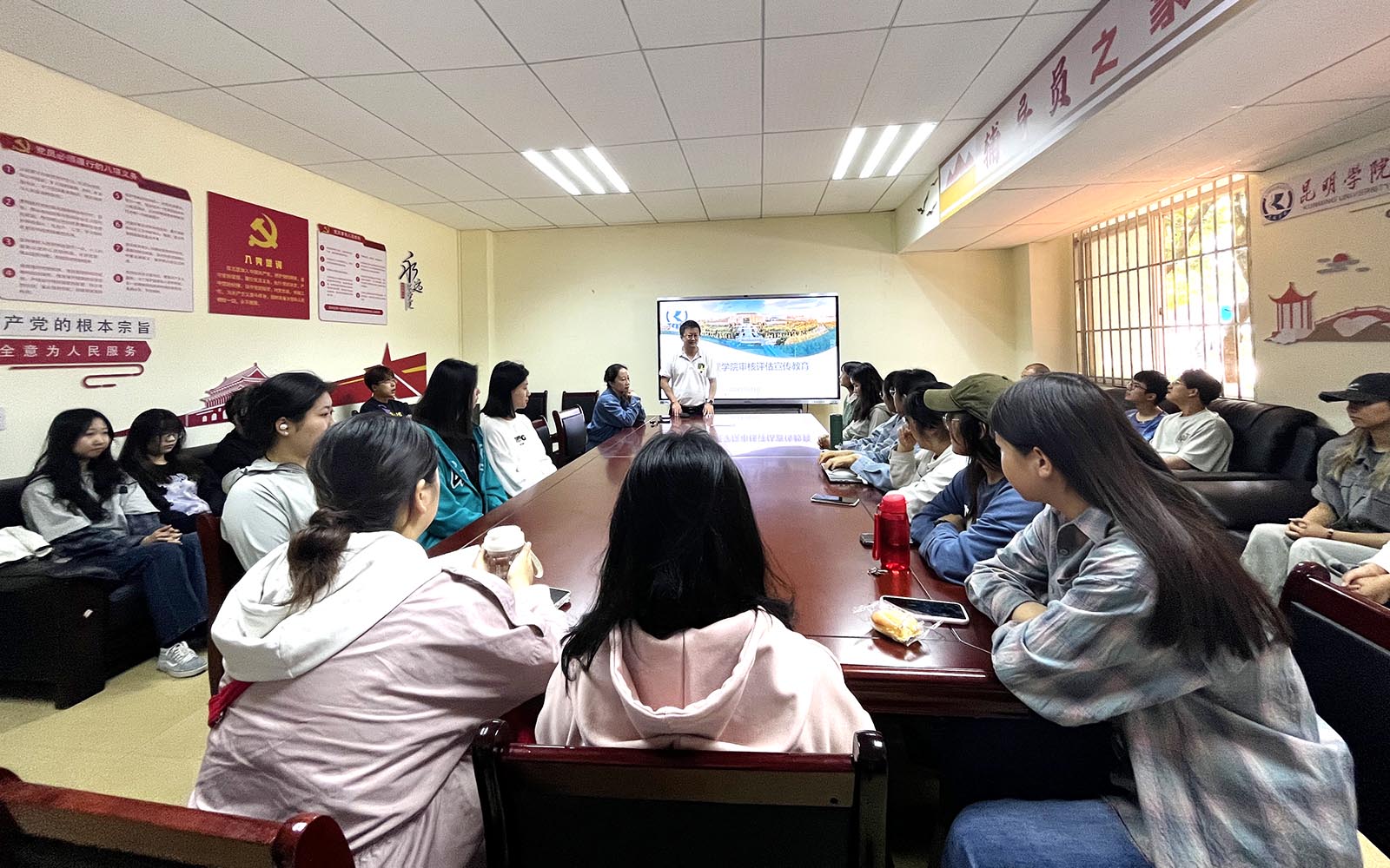 2024年4月16日下午,2026年国际足联世界杯2023级会计班在一站式员工社区召开新一轮本科公司产品审核评估宣讲主题班会。副经理林涛老师为同学们宣讲,班主任苏璐健老师主持...